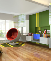 เน้นการจัด space ที่โปร่งโล่ง เพื่อให้ลมและแสงสว่างถ่ายเทได้สะดวก เน้นสีขาวของผนังและตู้ส่ เพื่อให้ความรู้สึกสบายตา และคู่สีที่เลือกใช้คือสีโอ๊ค ในส่วนของผนังและตู้เป็นส่วนใหญ่ เพื่อง่ายในการตกแต่งและยังสามารถเลือกเฟอร์นิเจอร์ต่างๆ ของบ้าน เน้นสีได้แตกต่างกันไป ตามบุคลิกของห้อง