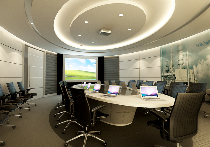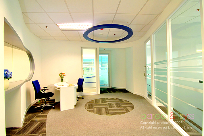 และในการกั้นพื้นที่เพื่อสร้างความเป็นส่วนตัวของ Work Station ในแต่ละชุด จะถูกติดตั้งด้วย Curved Partition ที่จัดวางเป็นระยะ ทำให้เกิดความเป็นสัดส่วนแต่ไม่ปิดทึบ และยังทำให้เกิด Movement ที่น่าสนใจและไม่น่าเบื่อแบบเฟอร์นิเจอร์สำเร็จรูปแบบอื่นๆ และที่สำคัญ การสั่งผลิตเฟอร์นิเจอร์แบบนี้ ยังมีการปรับให้เหมาะสมกับการใช้งานของพนักงานในแต่ละตำแหน่งได้อย่างถูกต้องและเหมาะสม