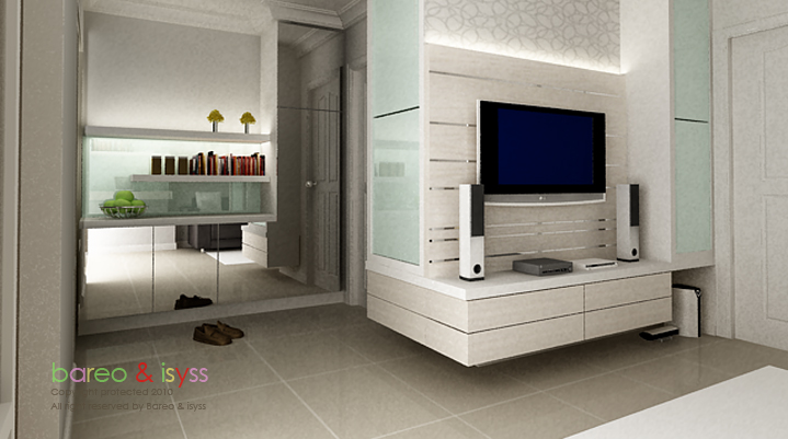 การออกแบบมีการนำเอากระจกเงา และกระจกพ่นสีขาวมาใช้ และการใช้โทนสีอ่อน เพื่อให้ห้องดูสว่าง และเพิ่มให้ห้องดูมีมิติ และกว้างขึ้นค่ะ ในส่วนของชั้นวางของมีการใช้ไฟซ่อน เพื่อเน้นให้ขอโชว์ที่วางดูเด่น
