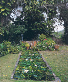 Tropical Style เป็นงานที่ต้องดูแลตั้งแต่งานสถาปัตยกรรม งานตกแต่งภายใน รวมไปถึงงาน Landscape ที่รายล้อมตัวอาคาร ในแต่ละส่วนเป็นสิ่งที่ต้องเอื้อประโยชน์ ต้องสอดคล้องกัน และมองข้ามส่วนหนึ่งส่วนใดไปไม่ได้เลย สวนจึงมีการแบ่งจัดไว้เป็นสัดส่วน มีส่วนช่วยเสริมความเป็น Tropical มากยิ่งขึ้น คือ เน้นไม้ดอกที่มีสีสันหลากหลาย แต่จัดวางไว้อย่างลงตัวของพันธุ์ไม้นานาชนิด อาทิ ไม้พันธ์ตระกูล ดอกหน้าวัว, ชบา, เฟื่องฟ้า และสระบัว เป็นต้น