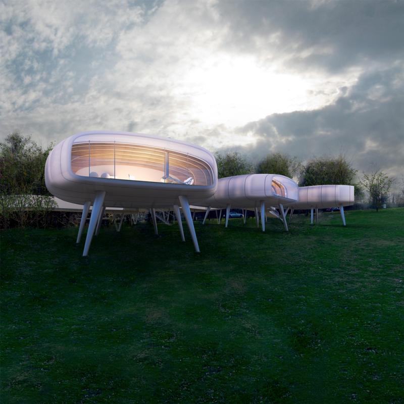 เหนือที่ราบลุ่มไซลีเซียบนภูเขา Wieżyca ประเทศโปแลนด์ อาคารรูปร่างสะดุดตาที่ได้รับแรงบันดาลใจในการออกแบบมาจากปูที่กำลังเดินอยู่บนทะเลผืนหญ้า ถูกสร้างขึ้นมาเพื่อใช้เป็นศูนย์การวิจัยด้านเทคโนโลยีใหม่ๆ ที่มีแผนจะนำเหล่านักวิทยาศาสตร์และศิลปินที่อาศัยอยู่ในเมืองมาทำงานร่วมกัน เพื่อหาวิธีที่จะช่วยกันสร้างสรรค์สิ่งดีๆ ให้กับเมือง อาคารทั้งสามจึงแบ่งออกเป็นห้องประชุมเชิงปฏิบัติการกับห้องปฏิบัติการวิจัย และที่พักอาศัยสำหรับให้ผู้คนในเมืองแวะเวียนกันมาร่วมกิจกรรมเวิร์คช็อป โดยที่อาคารจะเปิดไฟส่องสว่างตลอดทั้งคืน ทำให้ดูเหมือนหิ้งห้อยที่บินไปมาอยู่เหนือเมือง อาคารไฮเทคที่ตั้งอยู่ท่ามกลางแมกไม้นี้ เป็นสิ่งที่เชื่อมโยงความเป็นเมืองเข้ากับสิ่งแวดล้อมตามธรรมชาติได้อย่างสอดคล้องกัน