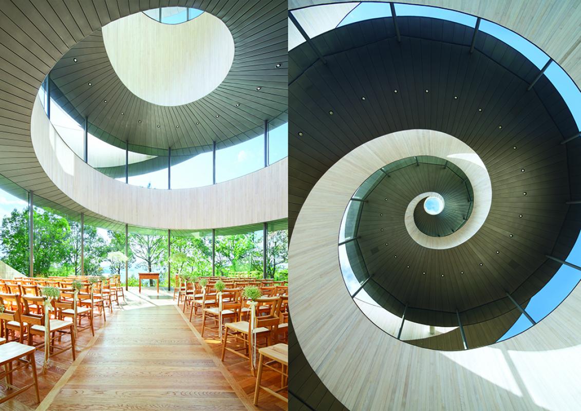 โบสถ์รูปทรงก้นหอยแห่งนี้ตั้งอยู่ในสวนของรีสอร์ท BellaVista SPA & MARINA ONOMICHI ในเมืองโอโนะมิจิ (Onomichi) จ.ฮิโรชิม่า บนกึ่งกลางของเนินเขาเขียวชอุ่ม ที่เมื่อมองออกไปจะเห็นทัศนียภาพอันสวยงามของทะเลได้อย่างสุดลูกหูลูกตา โดยส่วนใหญ่แล้วโบสถ์หลังนี้มักถูกใช้ประกอบพิธีแต่งงานของคู่บ่าวสาว เพราะรูปทรงของอาคารที่เหมือนกับเส้นริบบิ้นผูกเกี่ยวกันไปมานี้ เหมือนแทนความหมายถึงการประคับประคองและช่วยกันอุ้มชู่ชีวิตคู่